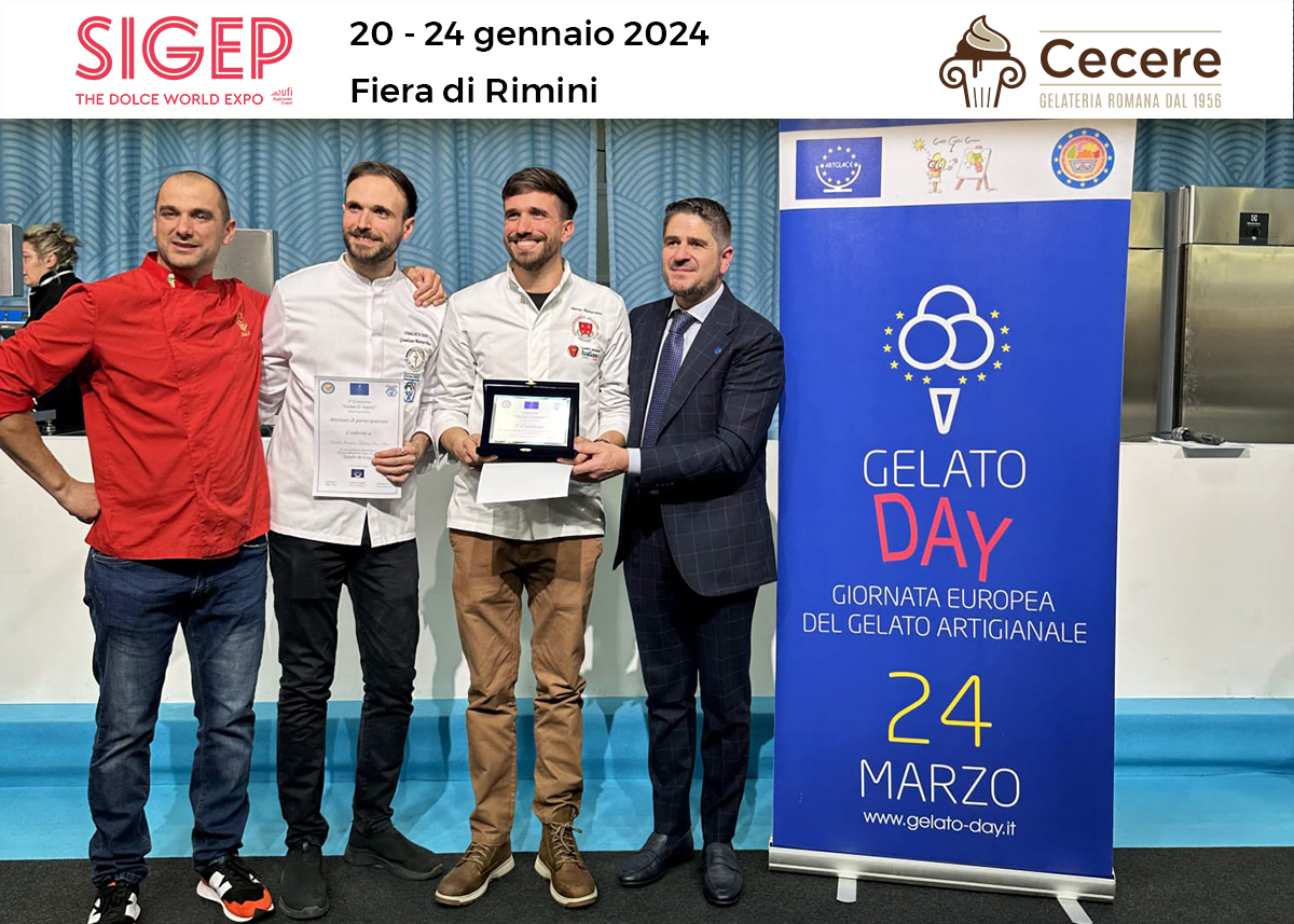 Ma le nostre soddisfazioni non finiscono qui. A gennaio 2024, durante il concorso “Gelato d’Autore” del SIGEP a Rimini, Gelateria Cecere si è distinta ancora una volta, aggiudicandosi diversi premi.